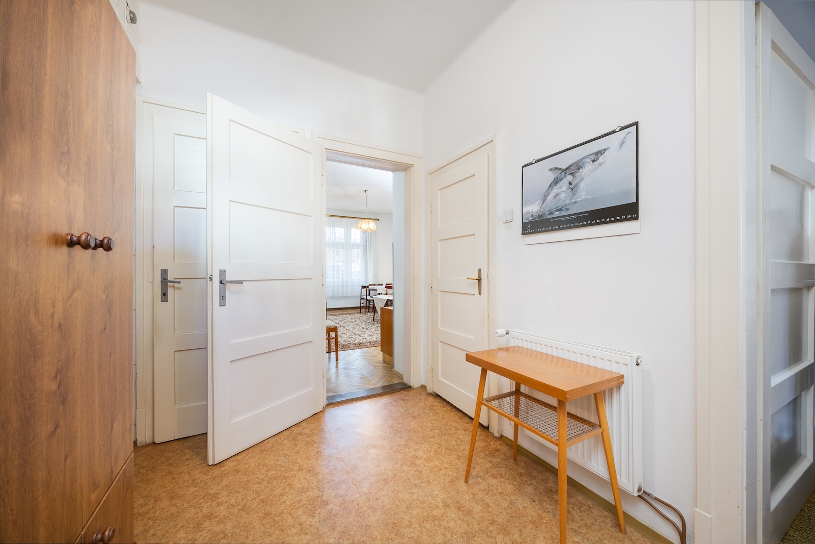 Velmi dobrý stav původních interiérových dveří s obložkami podtrhuje autentickou atmosféru bytu. Ostatní technické prvky jsou v původním, avšak udržovaném stavu.