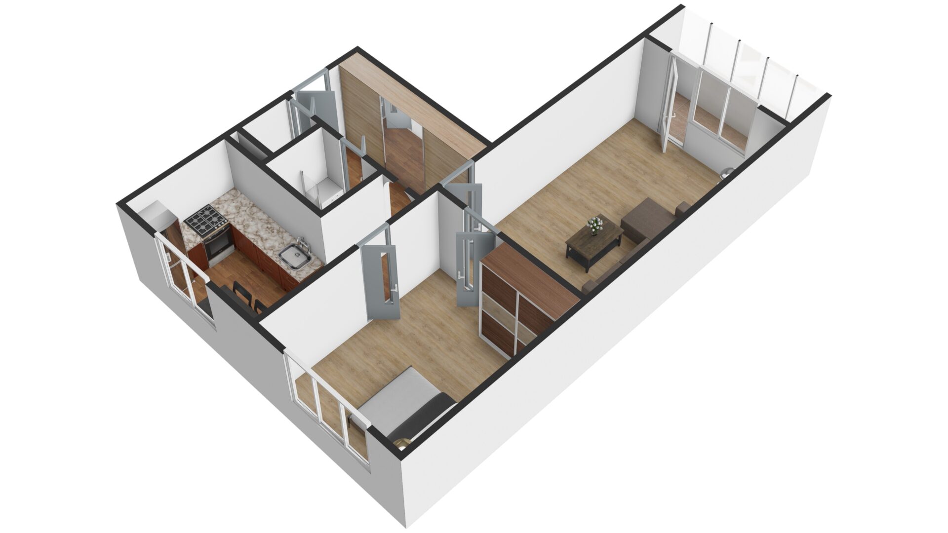 Byt disponuje obývacím pokojem s výstupem na zasklenou lodžii, ložnicí, kuchyní se základní výbavou spotřebičů (trouba, plynová varná deska, kombinovaná lednice, mikrovlnná trouba, odsavač par), koupelnou se sprchovým koutem včetně pračky, samostatnou toaletou a předsíní.